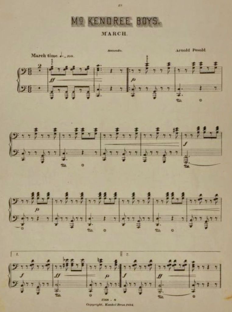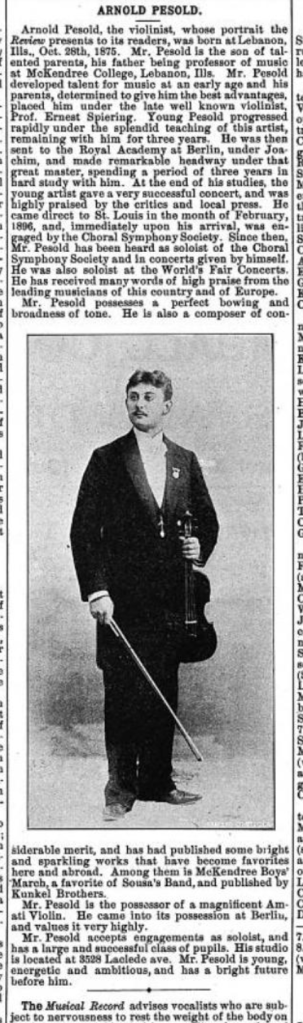 Frederick and Louisa (Reinhardt) Pesold purchased the home in 1897, running both a successful jewelry store and starting the music conservatory for McKendree as Fred, his son Arnold, daughters Otilia, Irene, and Julia all taught music for McKendree after the family implemented the music program. Arnold was a performer around the world as well as a composer, with McKendree’s Boys March being a local favorite.